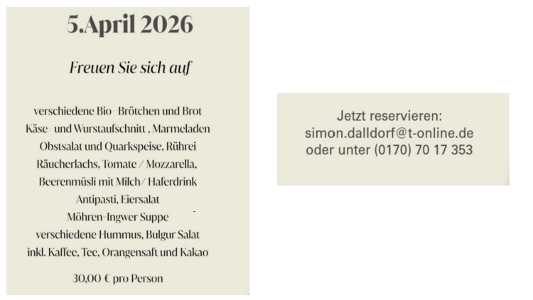 - 05. April 2026: Osterbrunch im Fritzcafe - Februar 26, 2026
