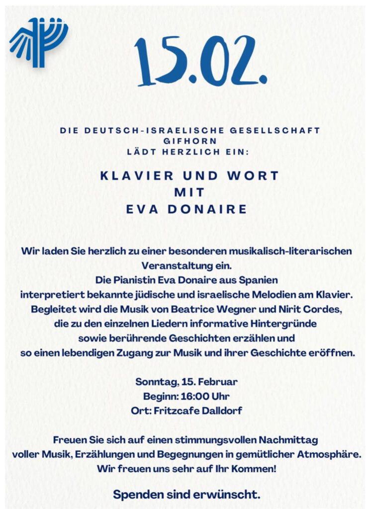 - Live-Musik | 15. Februar | 16:00 Uhr „Klavier und Wort – Eva Donaire“ - Februar 9, 2026