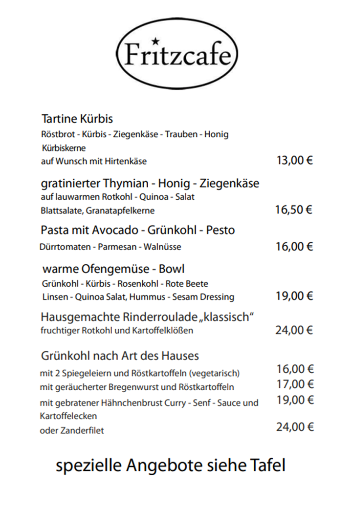aktuell: allgemeine Speisekarte – das gibts immer
